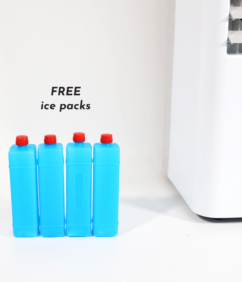 Featuring 3 fan speeds modes and a 7L water tank that can be filled with water and ice packs (included for FREE) to expel ice cold air and moisture into your room, allowing the air cooler to also act as a humidifier.